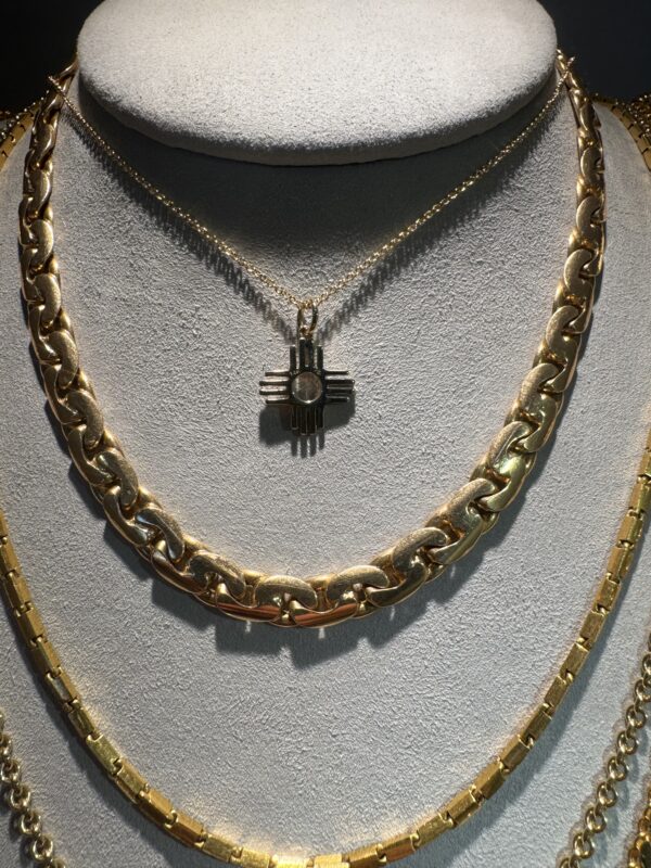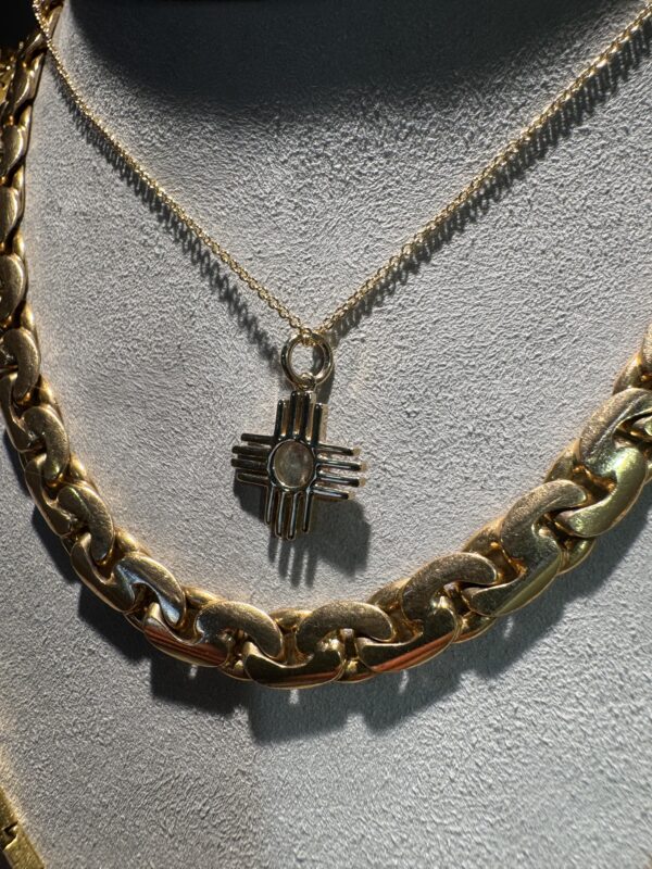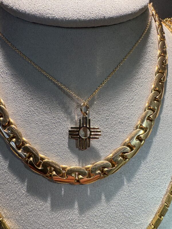 Category: Necklaces & Pendants Description 14k Yellow Gold Zia Pendant offered with or without 14k Yellow Gold Chain Related products 8CT Citrine & Diamond Detachable Pendant See More Fresh Water Pearl & Faceted Black Spinel Strand with 14K White Gold Catch See More Apatite & Diamond Pendant in 18K White Gold See More