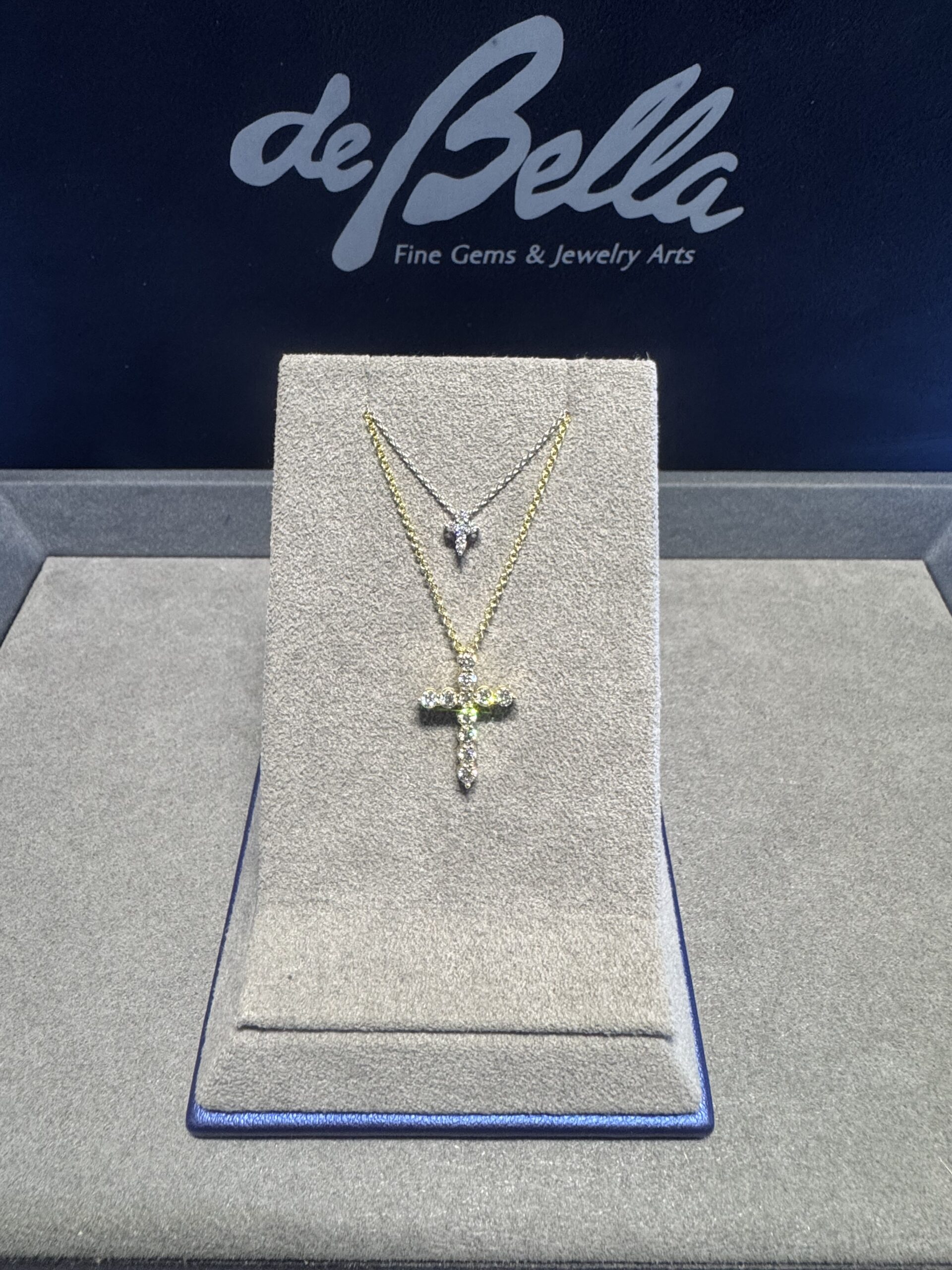 Categories: Diamond, Necklaces & Pendants Description Brilliant Cut Natural Diamond Cross Necklaces offered in various sizes of white and yellow gold with inquiries welcome. Related products Fresh Water Pearl & Faceted Black Spinel Strand with 14K White Gold Catch See More 8CT Citrine & Diamond Detachable Pendant See More Apatite & Diamond Pendant in 18K White Gold See More