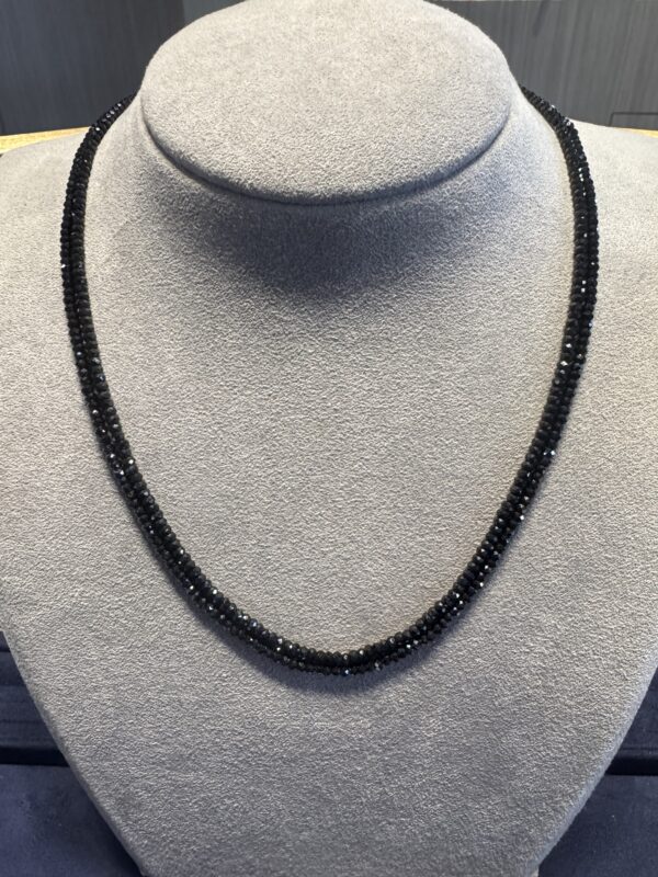 Categories: Necklaces & Pendants, Spinel Description Sparkling Faceted Black Spinel Double Strand 18” in length with 14k Yellow gold Clasp Related products Apatite & Diamond Pendant in 18K White Gold See More 8CT Citrine & Diamond Detachable Pendant See More Fresh Water Pearl & Faceted Black Spinel Strand with 14K White Gold Catch See More