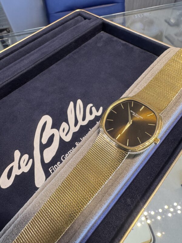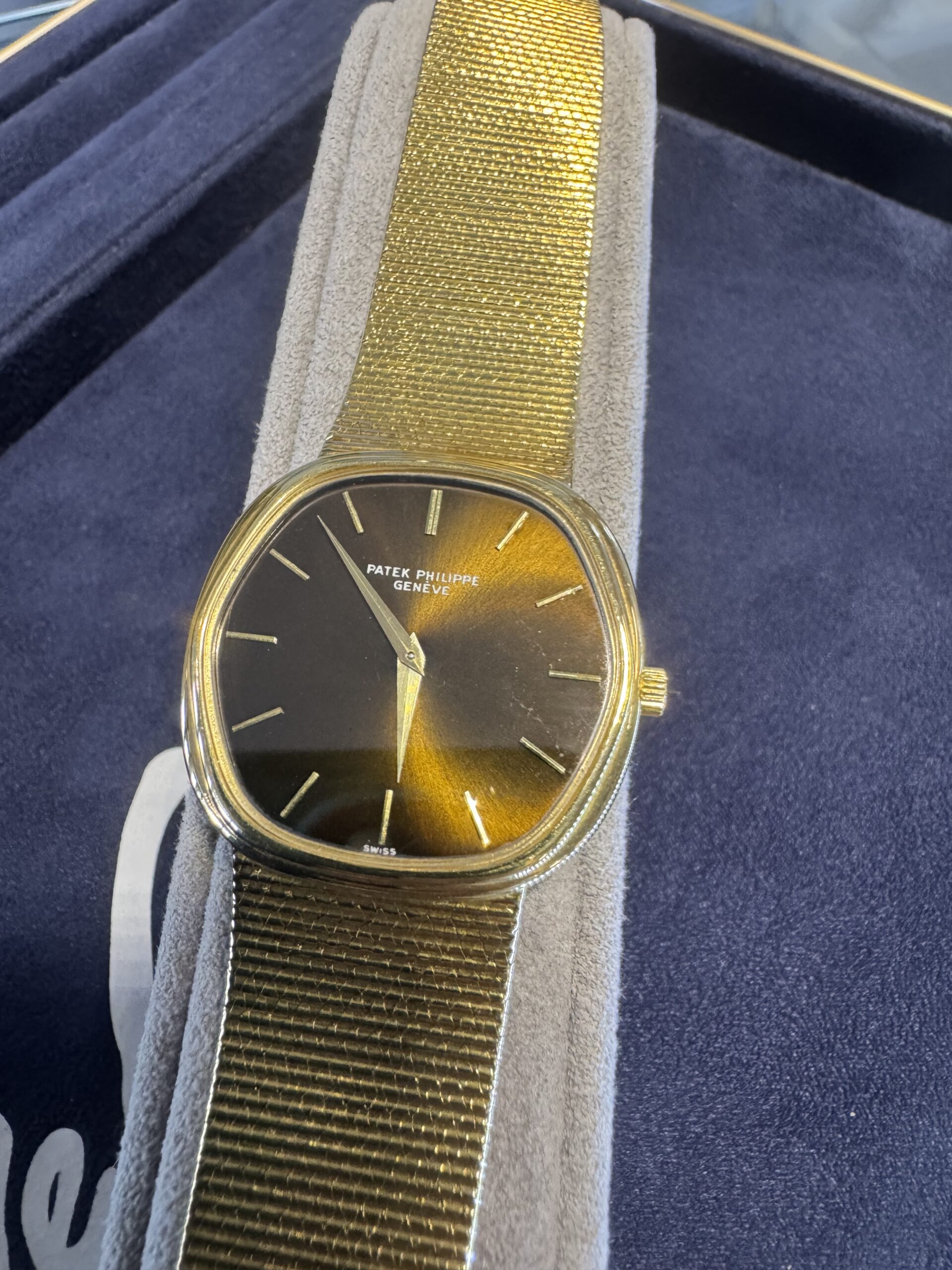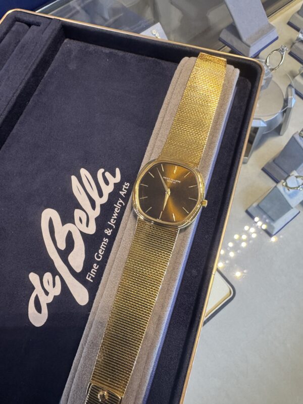 18k Yellow Gold Patek Philippe Ellipse with original Patek mesh style bracelet offered in-store with inquiries welcome. Let us help You wear your dream watch!